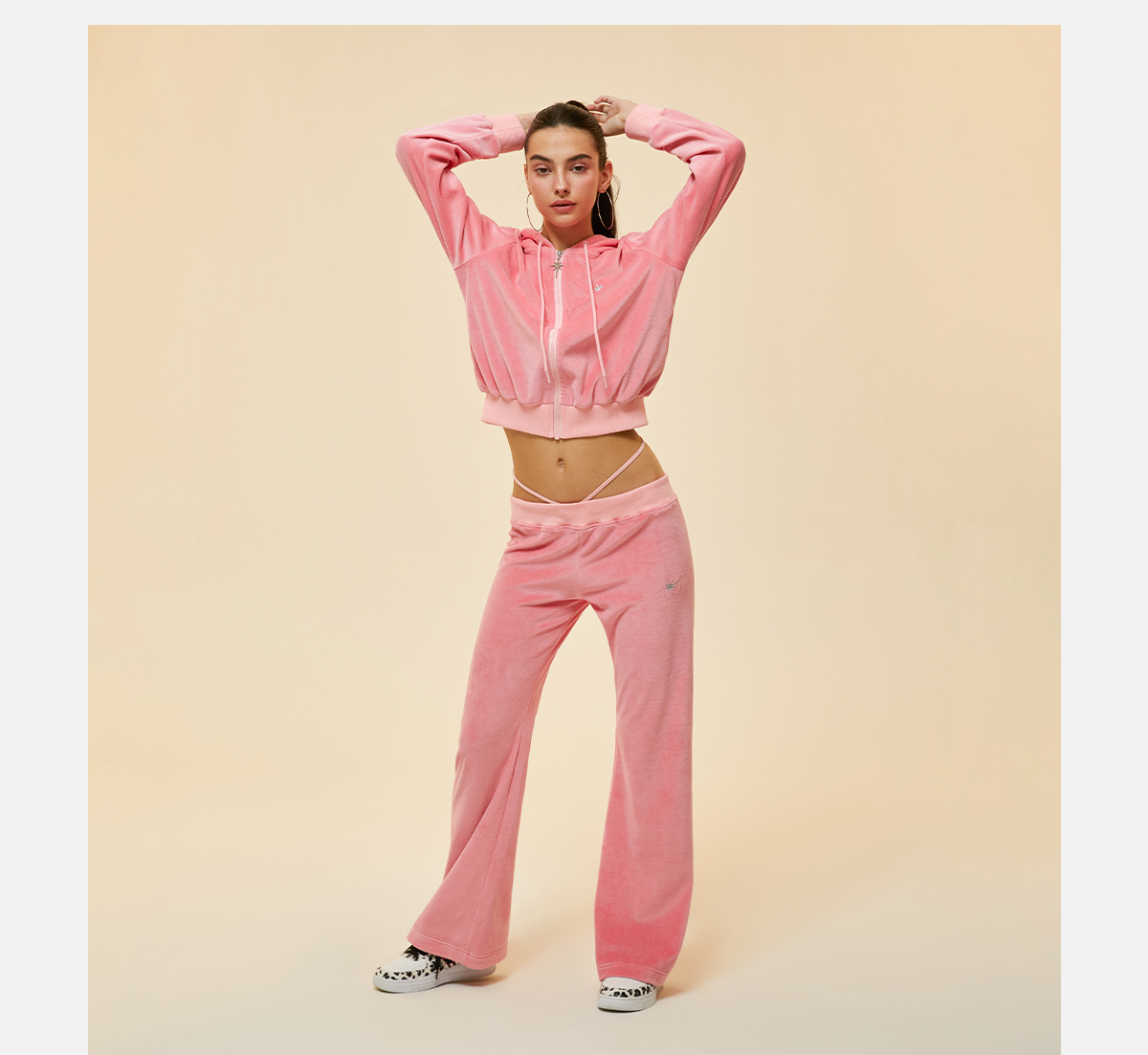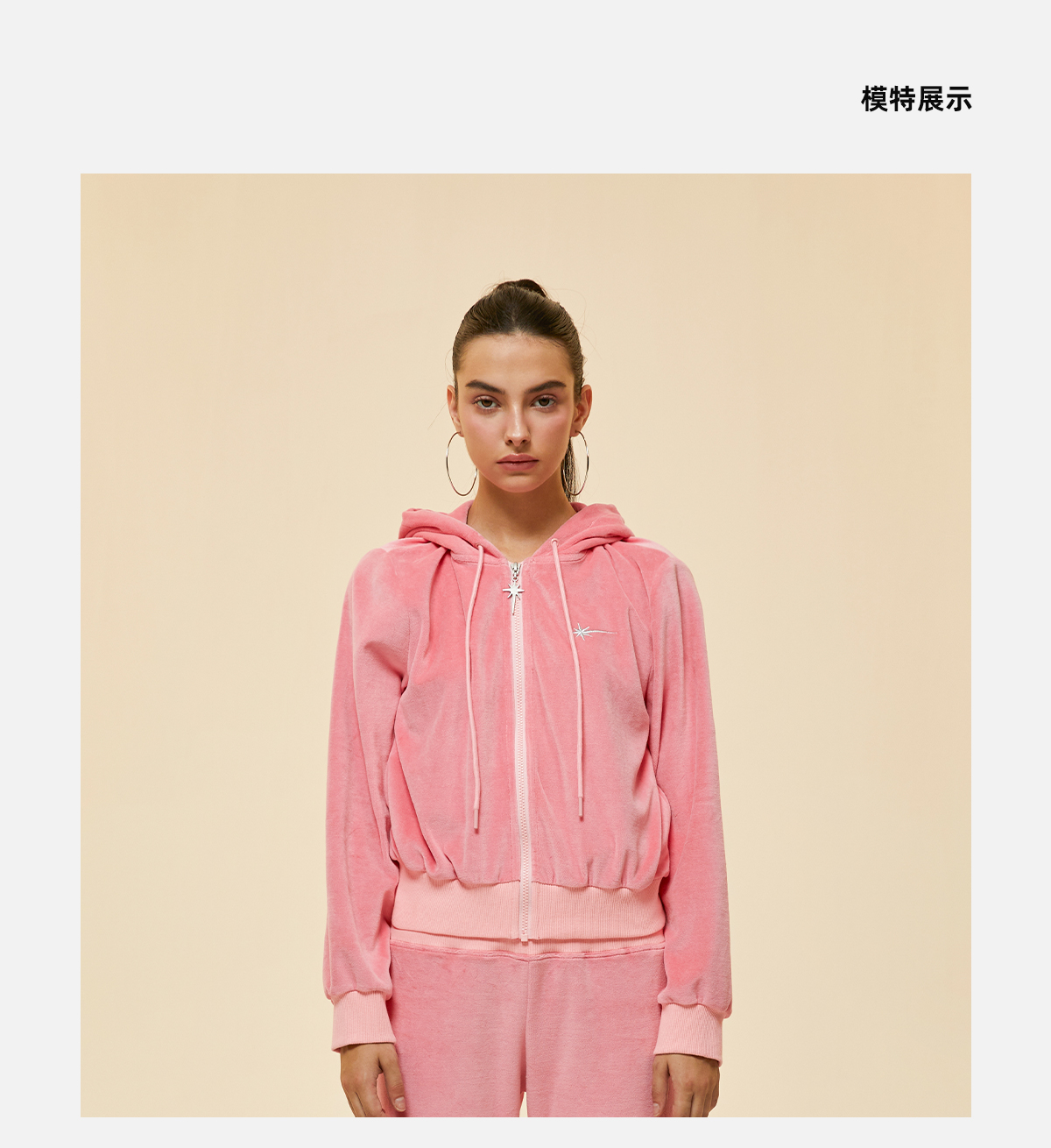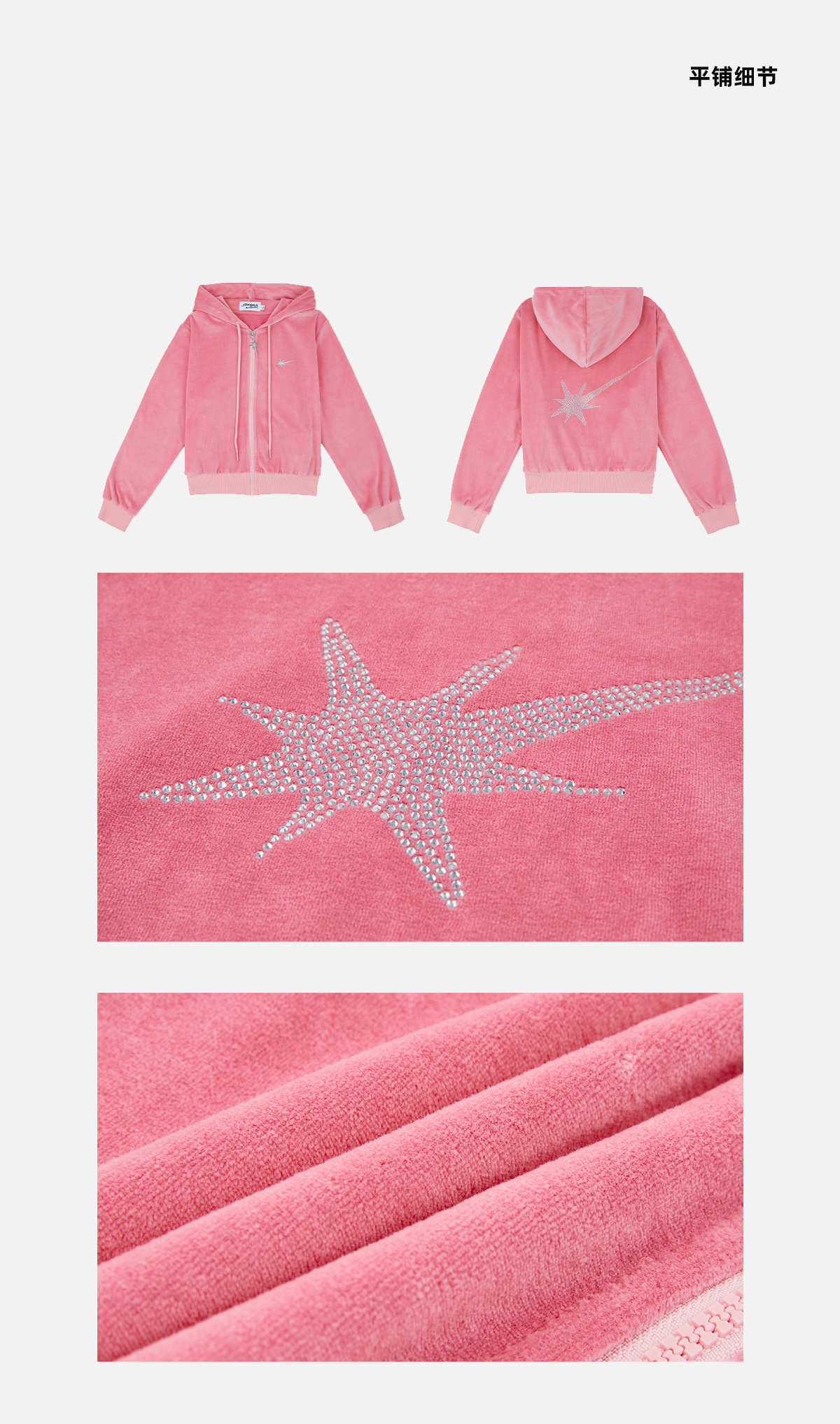 STARWALK SOLDIER 烫钻天鹅绒运动拉链帽衫 粉