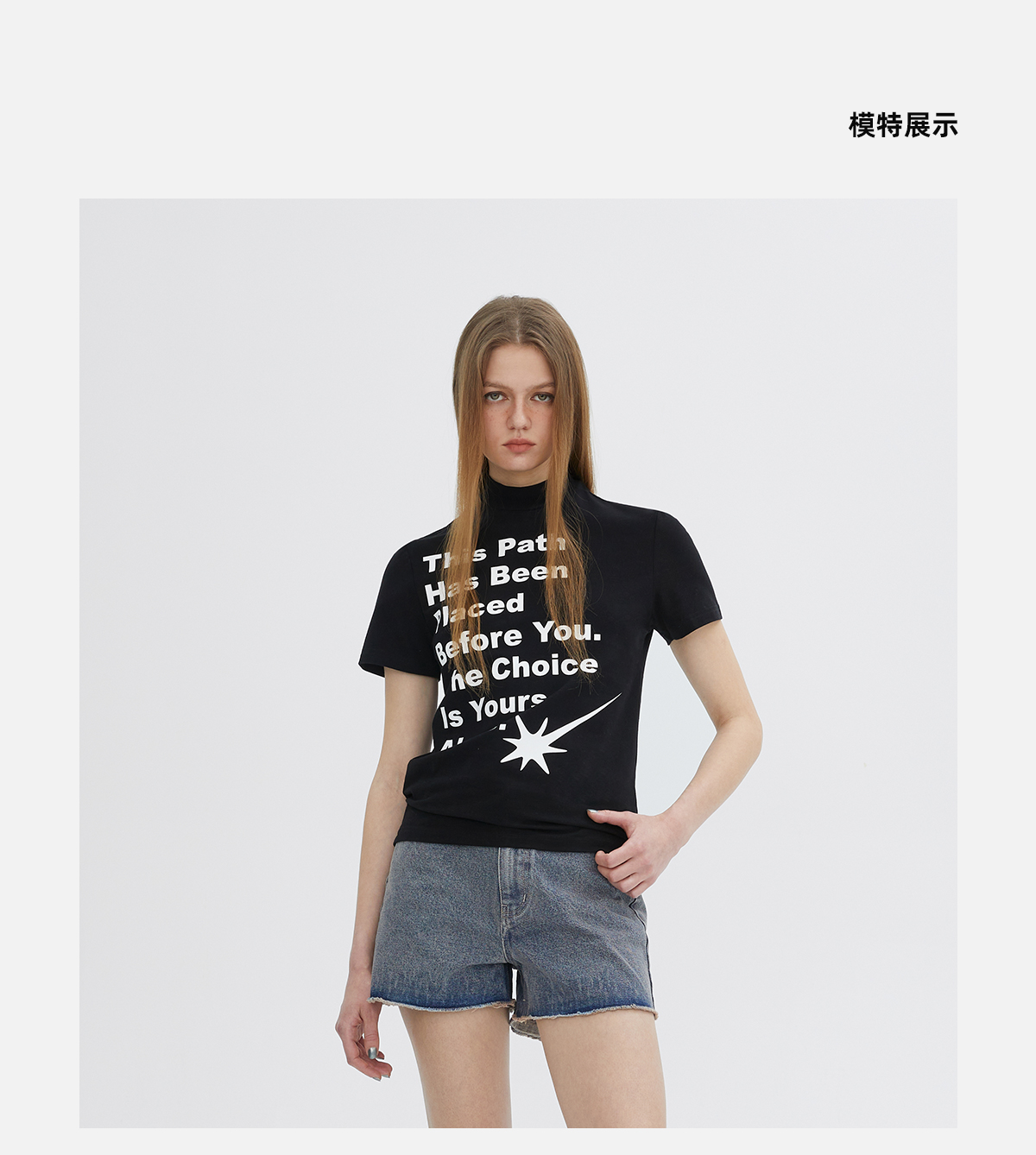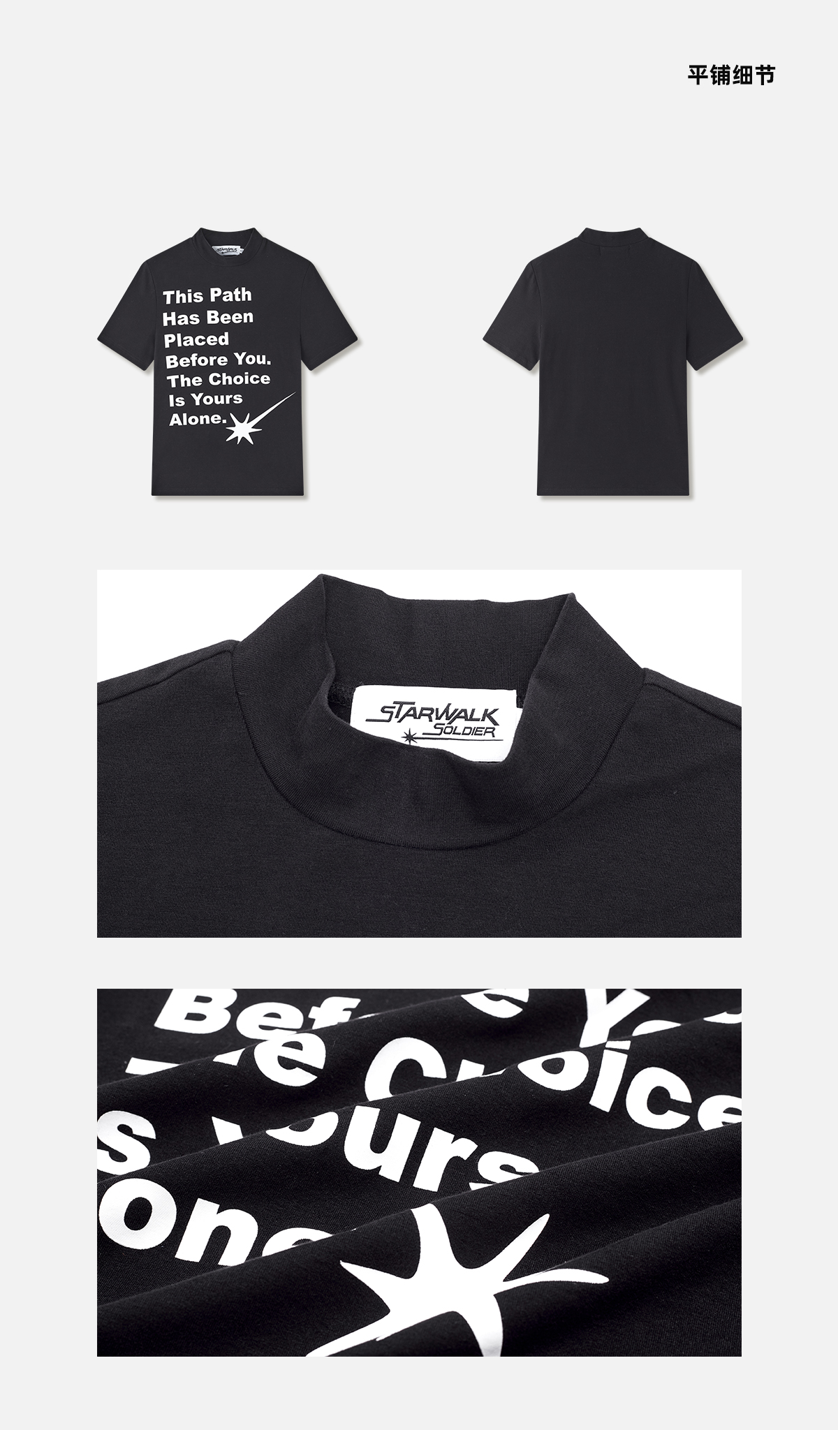 STARWALK SOLDIER 小高领大字印花短袖 黑色