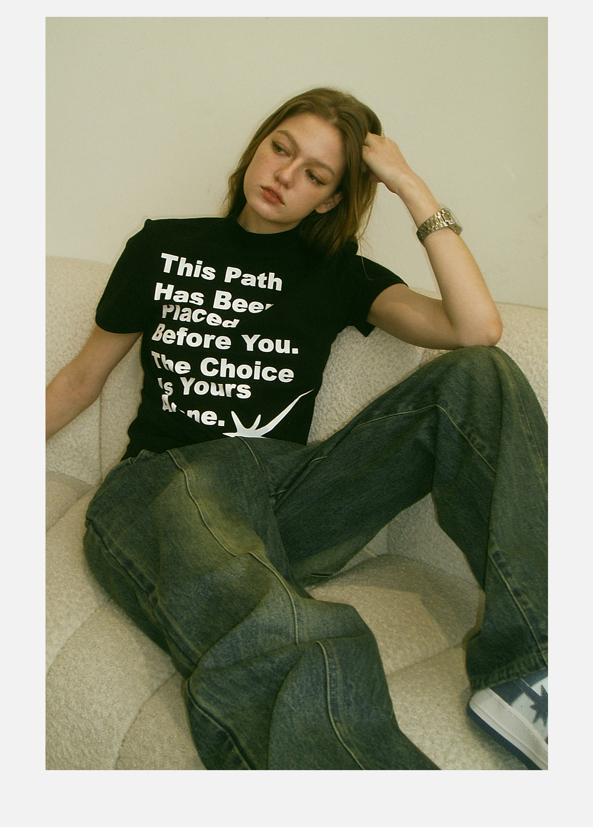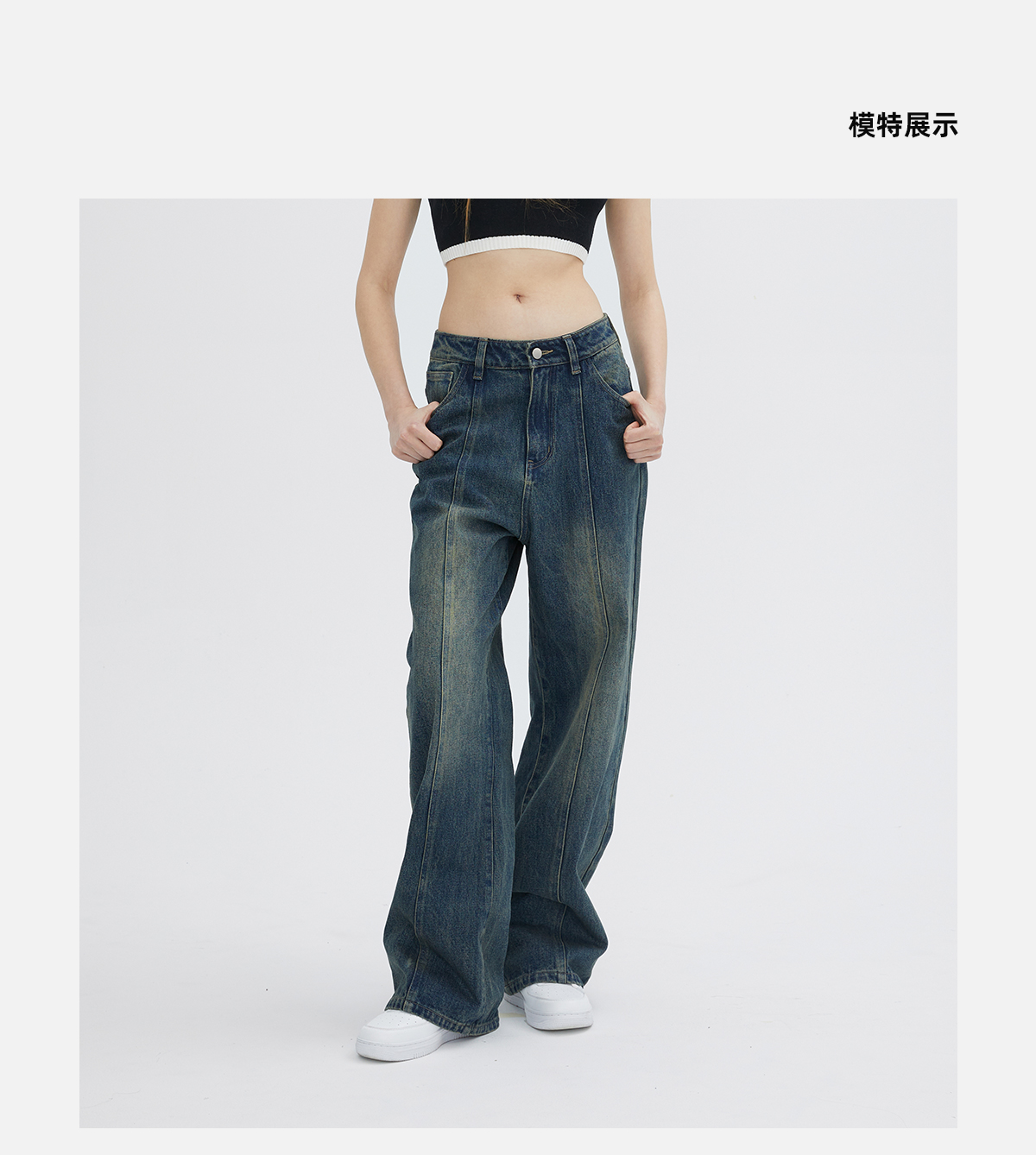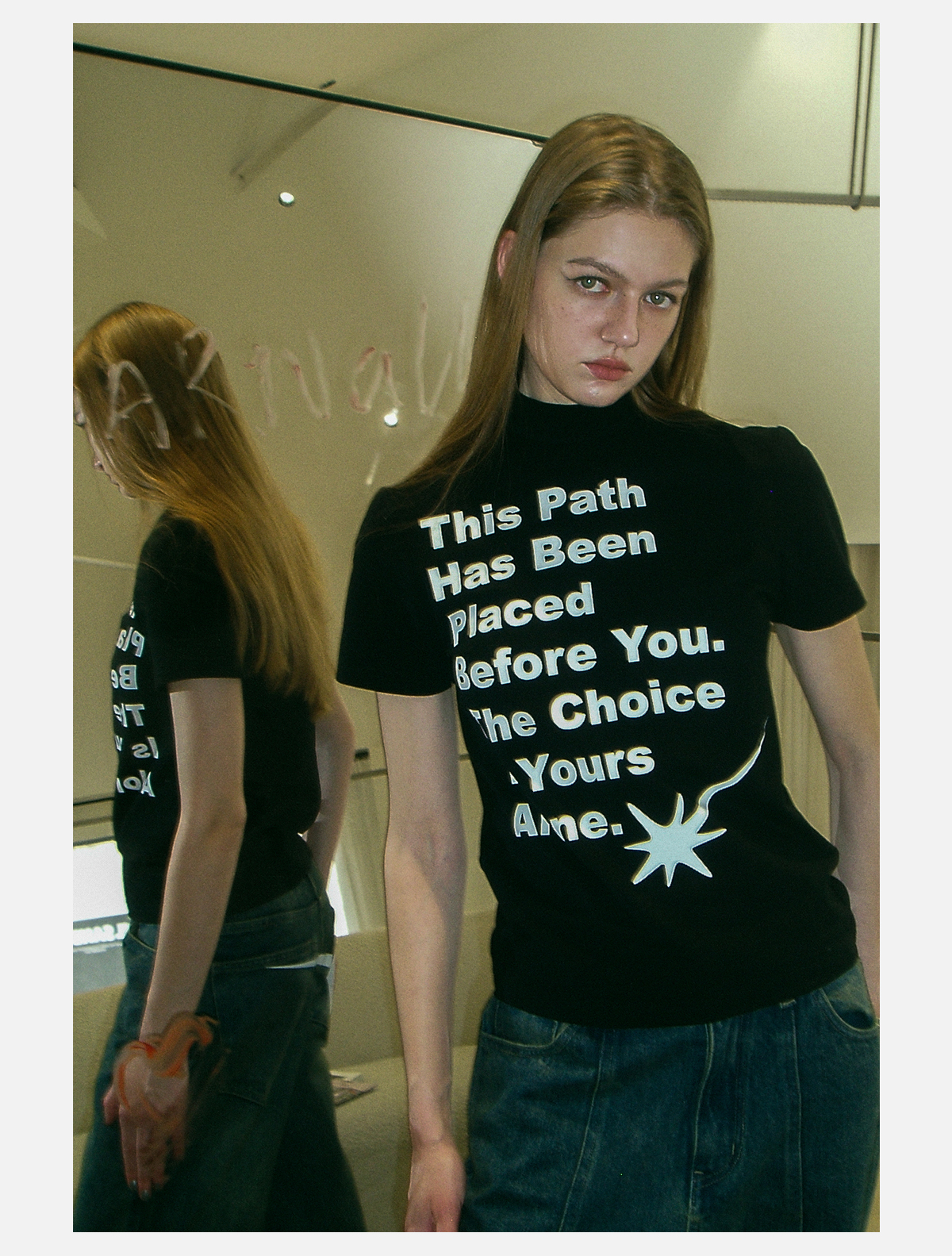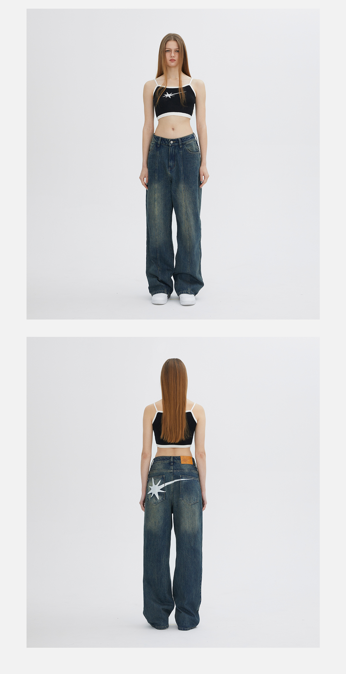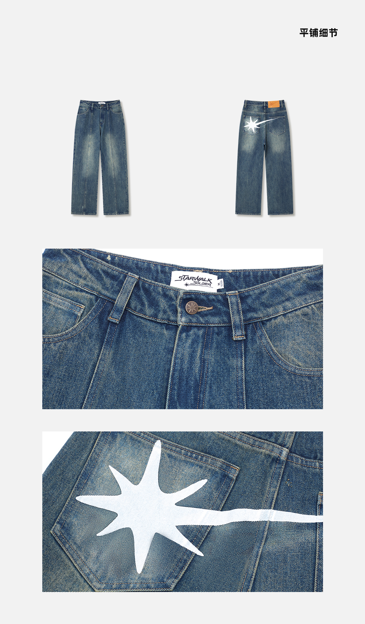 STARWALK SOLDIER 印花拼接作旧牛仔裤
