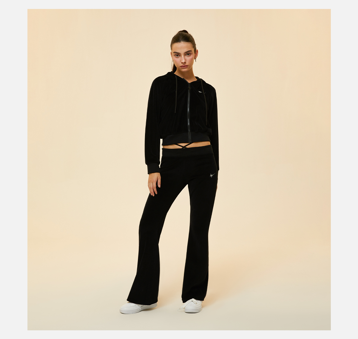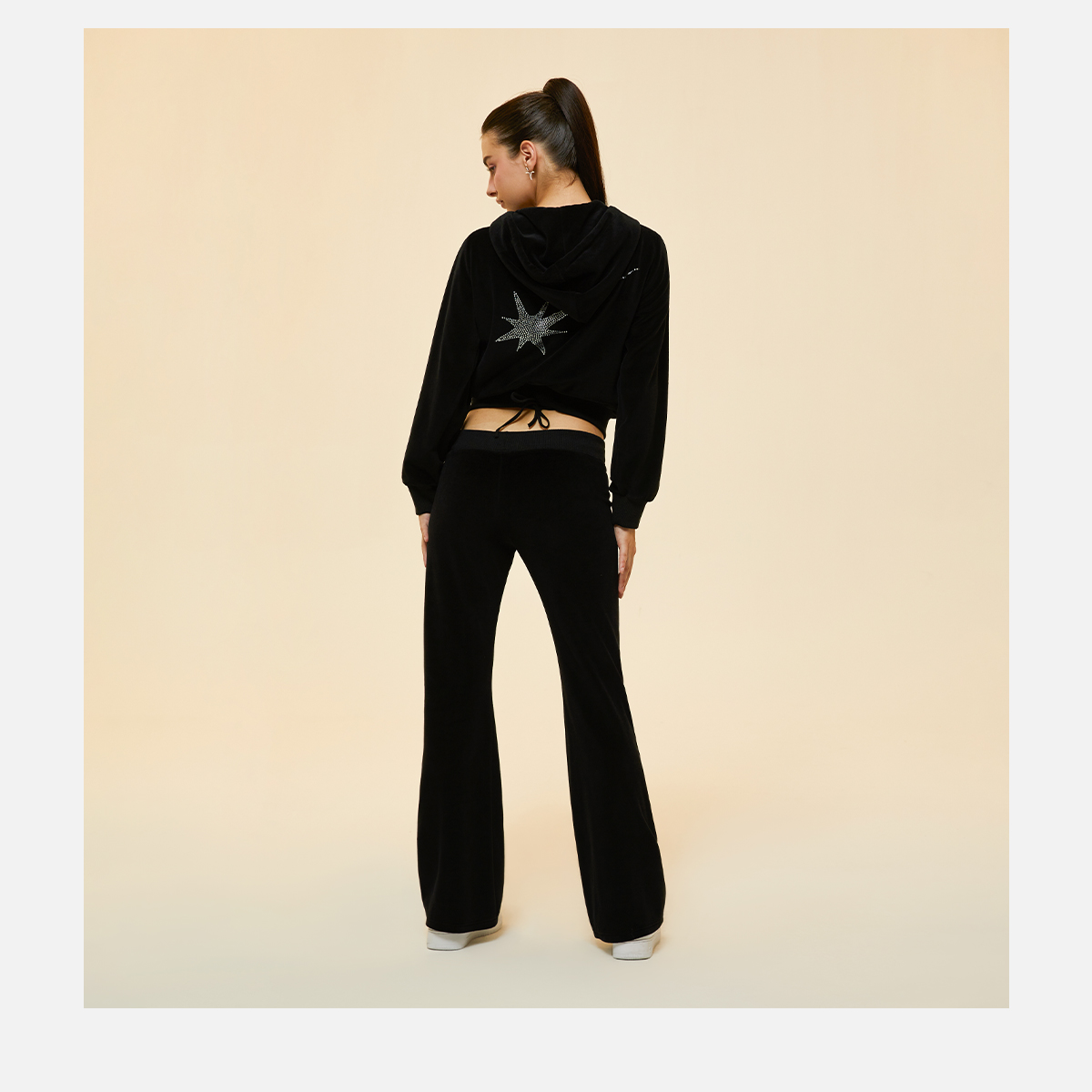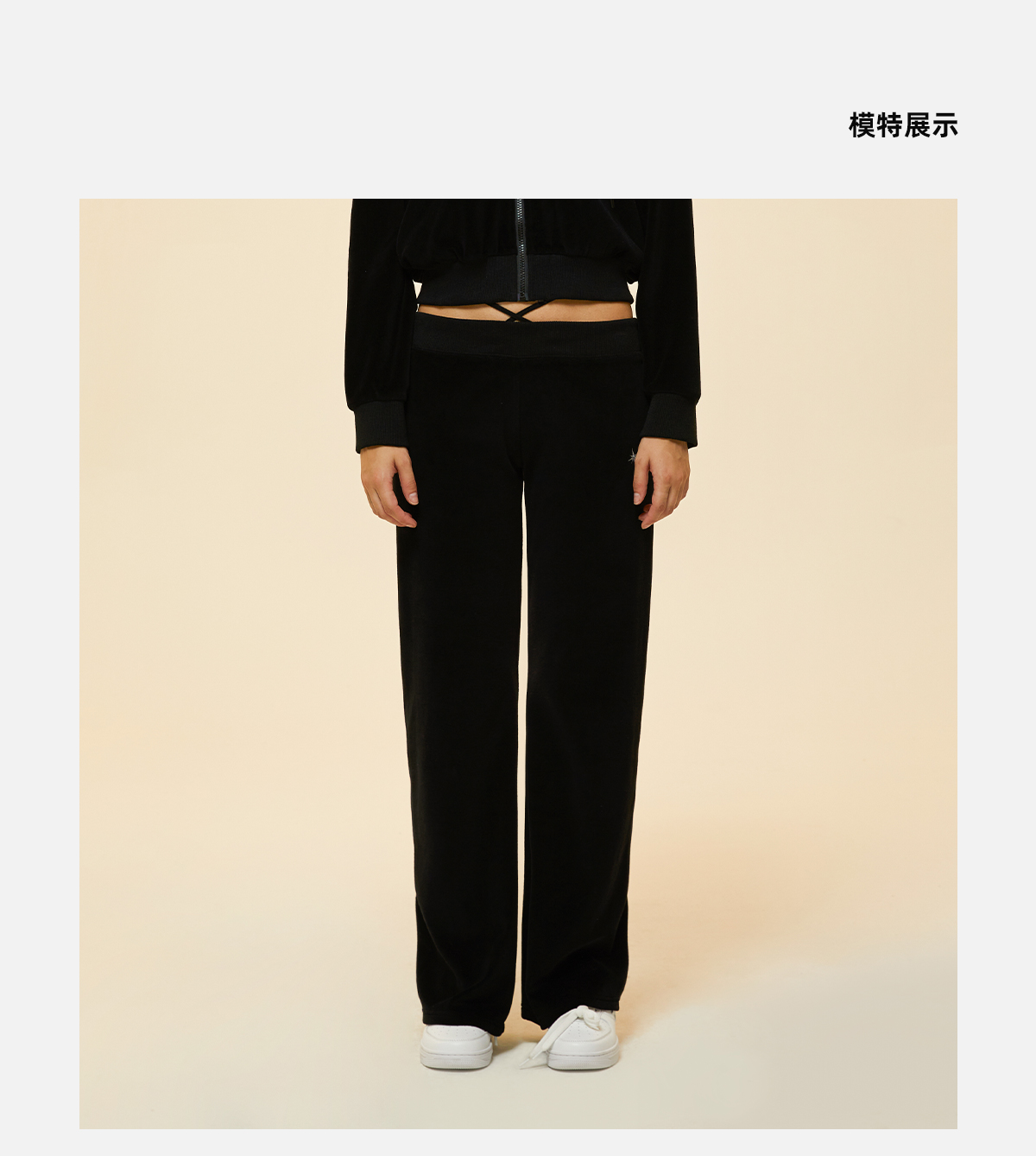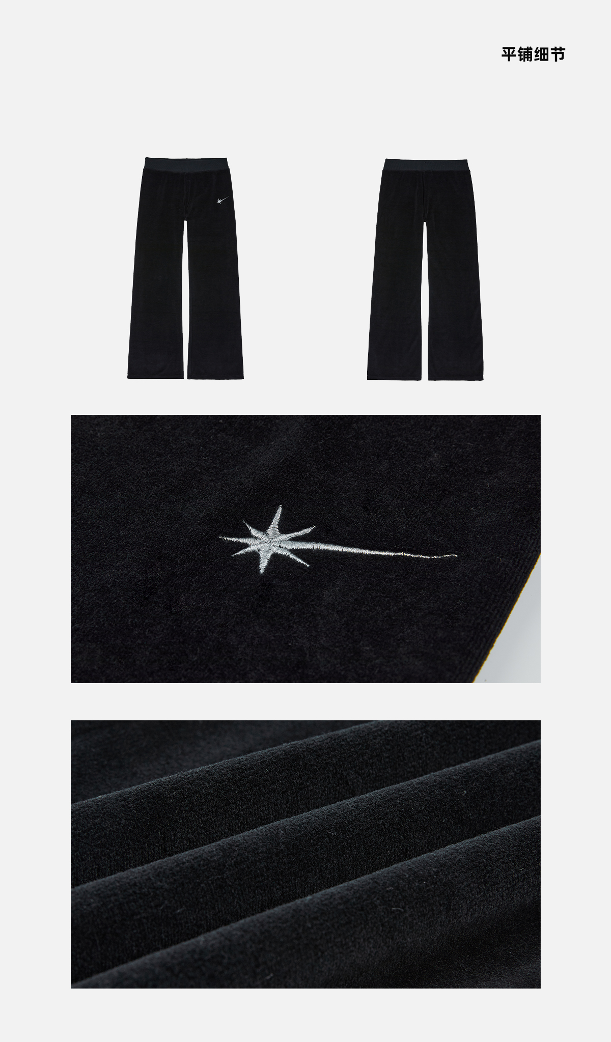 STARWALK SOLDIER 烫钻天鹅绒绑带运动裤 黑