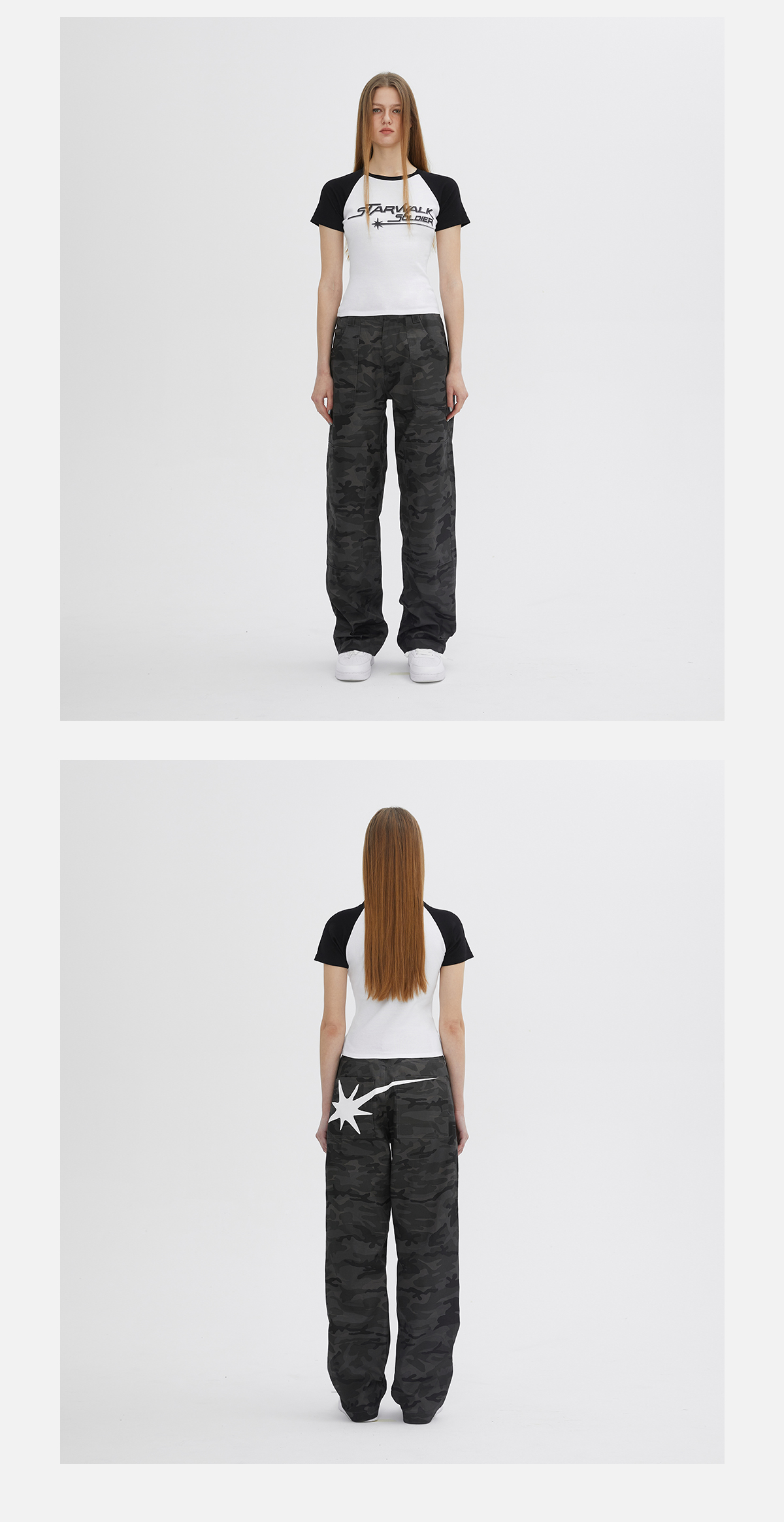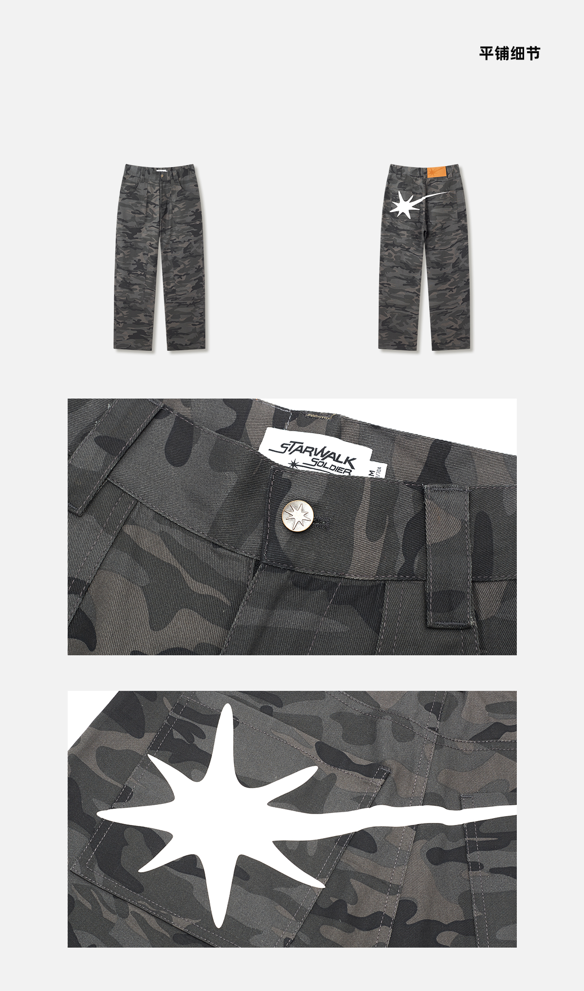 STARWALK SOLDIER 黑灰迷彩星星印花工装裤
