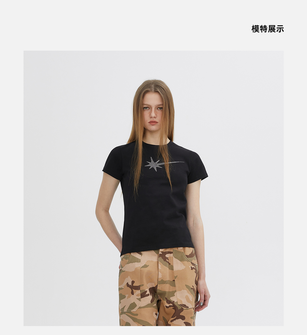 STARWALK SOLDIER 修身烫钻短袖 黑